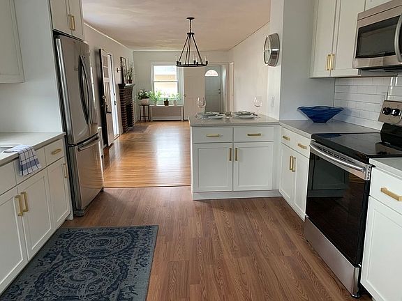 Light, Bright and Airy!! This completely renovated 3 bedroom ranch with high end finishes is freshly painted in and out. The large, kitchen has breakfast bar and new 42 inch shaker style cabinets for extra storage and soft close drawers. Quartz counter tops, tiled back splash and stainless appliances are all brand new. The french door refrigerator has side panels for a custom look. Perfect for entertaining and special family gatherings, the living room has a wood burning fireplace with nice flow to the dining area and kitchen. There is ample storage throughout this home with walk in closet in the master and heated mudroom / pantry behind the kitchen. There is a new vanity, sink and faucet in the classic black and white bathroom. The finished heated basement is ideal for playroom, media room or man cave. Upgraded electrical and plumbing, newer windows enclosed three season porch. Detached garage. Gorgeous professionally re-finished hardwood floors top the amenities. Prov/ North Prov line. Quiet dead end street. Close to 146/95. Social distancing protocols will be followed. Call Lisa 401-837-0924 or David 401 -864-7122