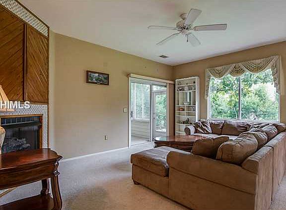 Rarely available in Sun City Hilton Head built by the original developer is this cute Kingston/Potomac model (1445sf) 2BR/2BA + enclosed Carolina room, open floor plan, fireplace, Hardiplank siding with Handicap accessible Master bath and landscape views in Beaufort County (lower taxes) close to Town Square amenity center, Okatie Creek Golf Club and exit gates. Come and live the 55 and better lifestyle in the SC Lowcountry near historic Savannah, Old Town Bluffton and the beaches of Hilton Head Island. (ZT)