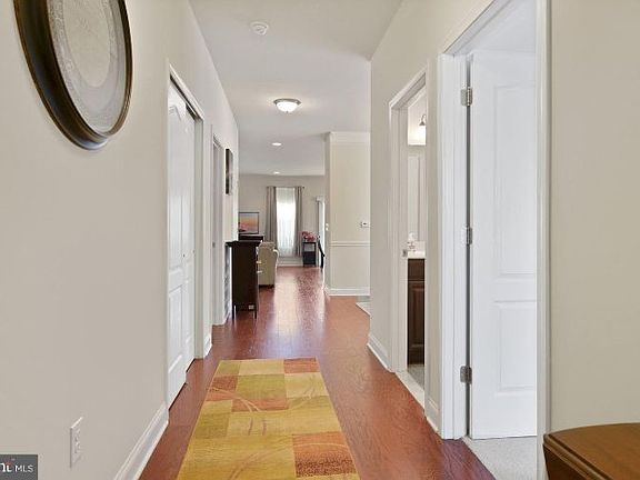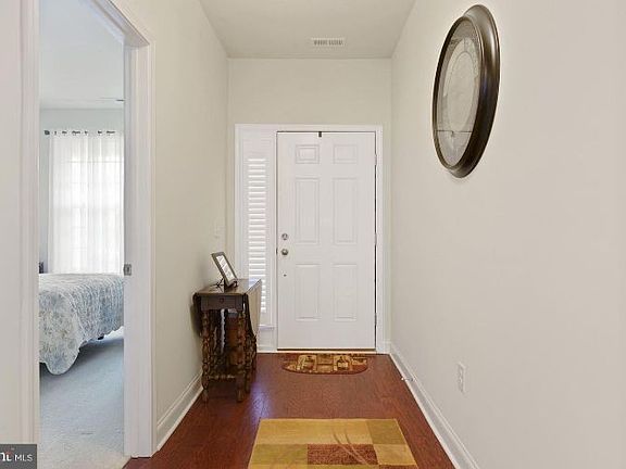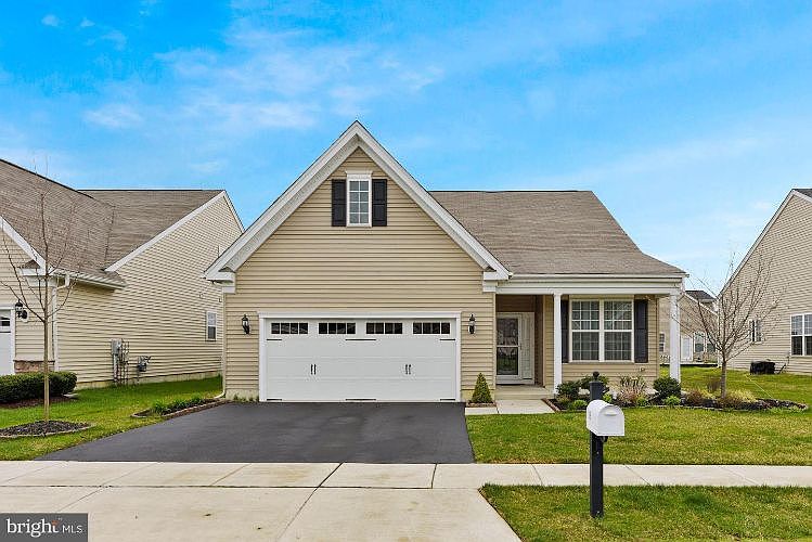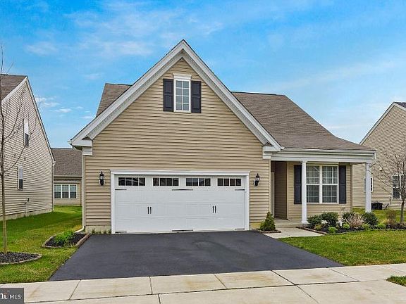 What a lovely place to call home in this wonderful active adult community. The low maintenance fees are very attractive. This home features a great kitchen with upgraded white cabinets and very tasteful granite and backsplash. Beautiful random plank walnut flooring is in living area and bedrooms are carpeted and very neutral. There are two walk in closets in main bedroom and double sink and walk in shower in main bathroom. There is a 10 x 10 unfinished room on upper level for finishing or handy storage. Move in condition and can close as quickly as needed.