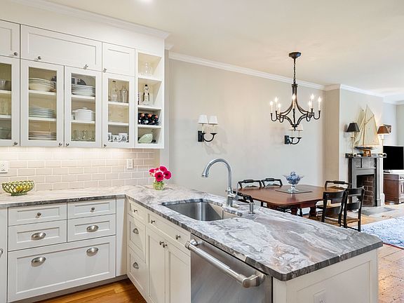 Located on the sunny side of Monument Square, this spectacular 3BR/2BA floor thru condo features soaring ceilings and a beautiful mix of period detail and tasteful updates. The gorgeous, front facing, living and dining “great room” features large windows overlooking the park, a marble mantel with fireplace, and gleaming pumpkin pine floors. The gorgeous chef’s kitchen is open to the living space and features tall, custom white cabinetry, high-end stainless appliances, including a Jenn-Air gas range, subway tile backsplash, and marble countertops. A generous bedroom with en-suite full bath, perfect for a home office or guest space, is tucked off the living room. Two additional bedrooms, including a primary bedroom with built-ins and glass door to a Juliet balcony, and a well-appointed full bath with jacuzzi tub are located at the rear for privacy. Amenities: in-unit W/D, exposed brick, central air, storage, and 1 car parking.
