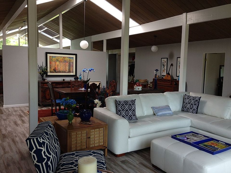 Newly renovated iconic Upper Lucas Valley Eichler (San Rafael). It is move in ready. It is a beautiful 2339 sq ft, 4 bedroom, and 2 bath home in a gorgeous neighborhood in San Rafael. Dixie School District! The family, dining, living rooms and kitchen are open, spacious. The house was built in 1964 but is basically brand new -- with a fully renovated kitchen, bathrooms, flooring, paint, windows, even knobs & pulls. The backyard is a work in progress and it has great bones! The neighborhood is gorgeous, surrounded by open space hills for hiking. There's a tennis court across the street and a pool, playground, etc. at the Community Center a short walk away. The sky is stunning a night, yet you are less than 5 minutes from the freeway. The beautiful Marin YMCA full service fitness facility and the McInniss Park Golf Club are about two miles away at the 101 exit