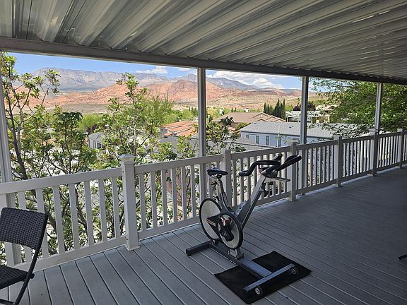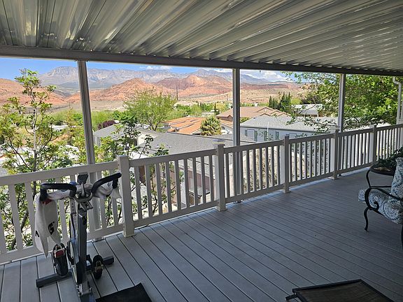 Amazing Views of Pine Valley Mountain from extra large covered deck. Home is set at the top of the subdivision on a quiet cul-de-sac. Cute 1 bed, 1 bath mobile home on it's own lot. Updated flooring and newish dishwasher & micowave. Stackable washer/dryer, located in laundry shed at back of covered deck. Large storage shed included. All furniture Included. Sold turn-key. Taxes reflect 2nd home status and will be 45% less if primary residence. Water, sewer and trash paid in HOA dues.