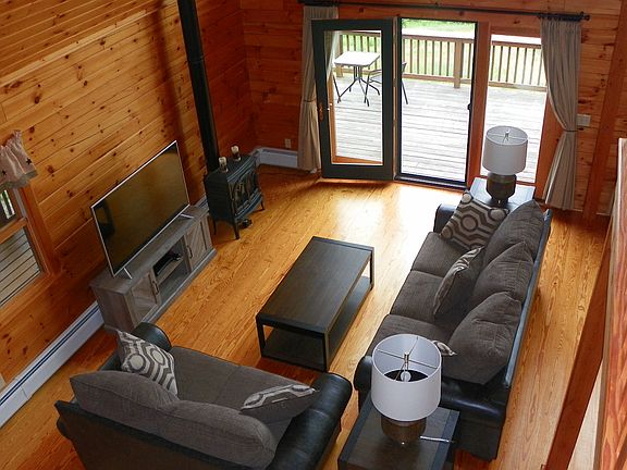 **Pending Lease** September 20th -June 30th. Pet Friendly with Owner Approval. Furnished home with all you need to move in. Kitchen is fully equipped with appliances, dishware, glassware, utensils. Wood floors throughout, cathedral ceilings, Palladian windows, loft overlooking main living area. You will feel like you are on the top of the world. Gas fired living room stove adds to the ambiance as you enjoy the star filled evening sky. Bed Set Up Bedroom 1: 1 Pyramid Bed (1 twin, 1 full) Bedroom 2: Twin Bed Bedroom 3: Queen Bed Linen and Towel Rental Program available Log Cabin on a MOUNTAIN - Four Wheel Drive Vehicle Required! Spectacular Western Views of the White Mountain National Forest. This Pet Friendly Property is situated on 6 acres and comes with a detached garage, wrap-around deck with a section screened off. It has a back up generator in case the power goes out. You are within 3 miles of snowmobile trails and a 20 minute drive to downtown Plymouth. The location is 1/2 way between Loon Mountain Resort and Ragged Mountain, and about a 30-minute drive to Waterville Valley. Come be at home in the Mountains!