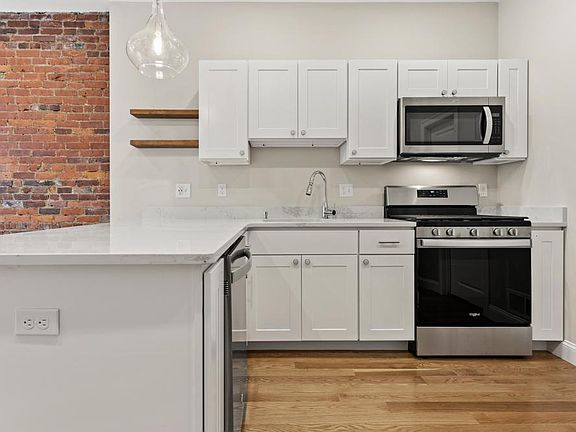 Exposed brick in this beautiful studio in the Ashmont area, minutes away from the T station. This renovated apartment is finished with shaker style white cabinets, all the appliances, etc. The new bathroom includes an in-unit washer/dryer. Central air with cooling. This is a desirable studio but it is SMALL. Utilities paid by the tenant for gas and electric. Sept 1 lease start. Due upon acceptance First & Last and agent fee by the tenant.