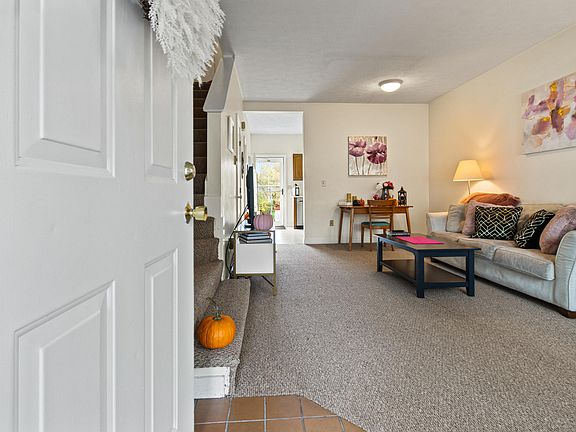 Welcome to this bright and inviting condo, ideally located in the desirable Ferry Village. A charming covered front porch welcomes you into the main floor, where you'll find an open and functional layout featuring a cozy living room, kitchen, laundry area, and a convenient half bath. The living room offers ample space for a dining area and is enhanced by custom blinds that allow natural light to flow in while maintaining privacy.