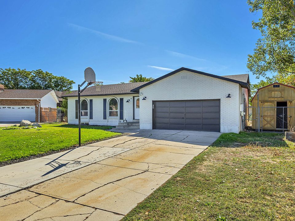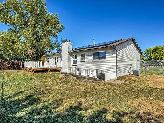 This beautifully updated farmhouse rambler features a high efficiency upgrade with all newer windows, paid-off solar panels, and a newer roof (2020). Recent renovations include updated plumbing, electrical, lighting, new carpet, and fresh paint throughout! The kitchen offers an open, inviting layout filled with natural light, featuring a stainless steel open basin sink and butcher block countertops. The spacious basement includes a walkout that provides excellent multi generational living potential! Outside, enjoy a large 14'x16' Trex deck that is perfect for entertaining! Outside there is a huge shed that's ideal for extra storage or as a small workshop. Conveniently located near restaurants, shopping, entertainment, Freeport Center, and Hill Air Force Base, this charming home is truly a must-see! VACANT AND EASY TO SHOW!
