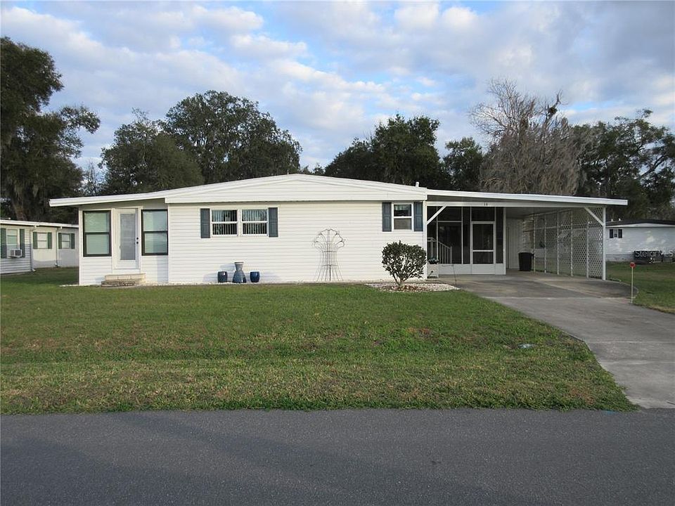 Wow, a Senior Gated Golf Community surrounded by the Villages for Shopping & Entertainment. This lovely home is in excellent condition and move in ready. Seller can move out quickly, so you still have plenty of winter season to enjoy this perfect home. This home comes with furniture, a newer roof, brand new Air Conditioner, laminate flooring, and many upgrades including a den. The Kitchen has several cupboards, and a breakfast bar. The large living room opens into a den which could be used as a 3rd bedroom or office. The large Master Bedroom has a large walk-in closet and a shower in the master bath. The Guest Bedroom has a door going into the guest bathroom for your guest’s privacy. There is a large screen room, with an attached utility room with washer and dryer and a storage room. There is a carport with room to park your golf cart and a wide driveway. Comes with membership into the Homeowners Association (RO Share) Our community offers many indoor and outdoor activities, an 18-hole professional Golf course and a Restaurant and a Lounge. We are surrounded by the Villages with shopping, entertainment, and medical services within a 5-minute drive. This home and area offer so much it’s the perfect place to spend your winters or live year-round.