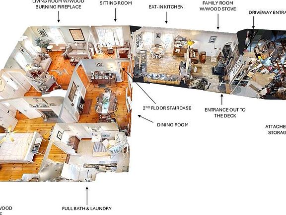 This well-loved 1835 Cape with an original fan over the front door consists of a beautiful, renovated first-floor living room with a wood-burning fireplace, dining room, large kitchen, and family room combination with an antique wood stove. The primary bedroom has a wood-burning fireplace, full bath, and laundry.