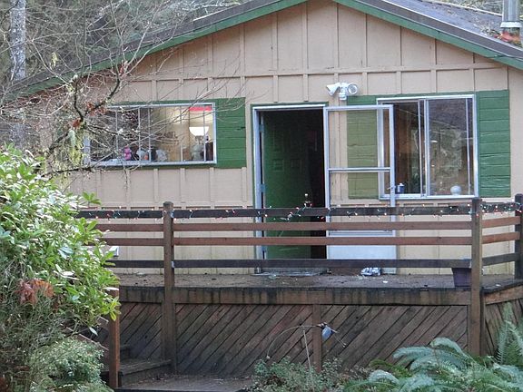Beautiful setting with a view of two creeks. Vaulted pine ceilings, large deck overlooking the creek, circular drive,24x30 detached garage