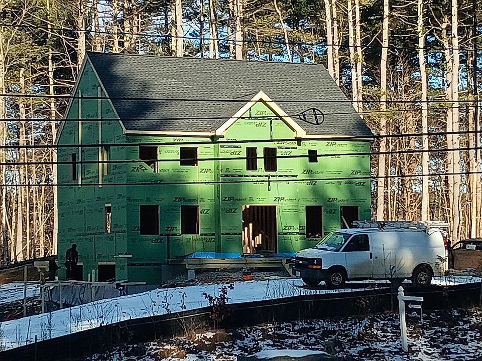 New Construction! Spacious Colonial 8 Rooms, 4 bedroom, 2.5 baths. 2 car garage with farmers porch on 1.4-acre lot that backs up to wooded privacy and 7-mile river. This new home comes with vaulted ceiling in the master bedroom, boast triple pane windows, beautiful white painted maple Shaker style cabinets and vanities with white quartz counter tops, stained hardwood flooring and tile bathroom floors throughout, all builders' choice included. Now buyers have a unique opportunity to modify finishes according to their desires. Possibilities include a walk-up finish attic as a 38' family room or a finished basement teen suite. Adding wainscoting trim and crown molding to rooms or stairwells, request higher ceilings, all possible at this time or add your own custom changes. Occupancy scheduled for March 2026.