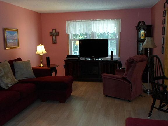 Charming Danbury with addition 4 season room. Laminated flooring thru out. Private backyard with flowers, shrubbery, shed, and extended patio. newer furnance, water heater,fridge. Window treatments included. Move in condition.
