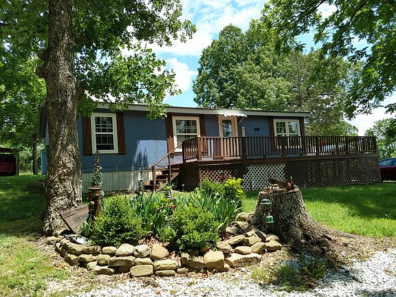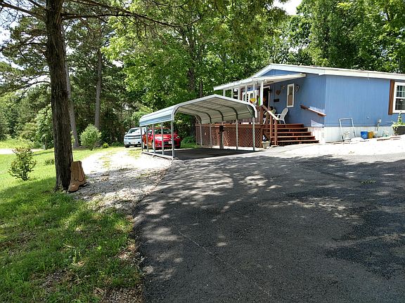 Well maintained mobile home with 3 bedrooms, 2 baths, and a 24 x 26 garage that has 220 electrical and 7'' concrete floor, with 10' overhead garage door. Also has a large RV carport plus 2 other carports. Central heat and air plus propane back up heat. Laminate flooring throughout, granite counter tops and beautiful kitchen cabinets. Large deck wraps around two sides. Lots of shade trees and perennials in the yard. Heat pump is 4 yrs old. Metal roof, new septic lines, and new windows. Very cute and comfortable home, approximately 3 miles from the beautiful Buffalo River. Room sizes are approximate. (Carports will convey, the small blue outbuilding will not convey, cookhouse will not convey)