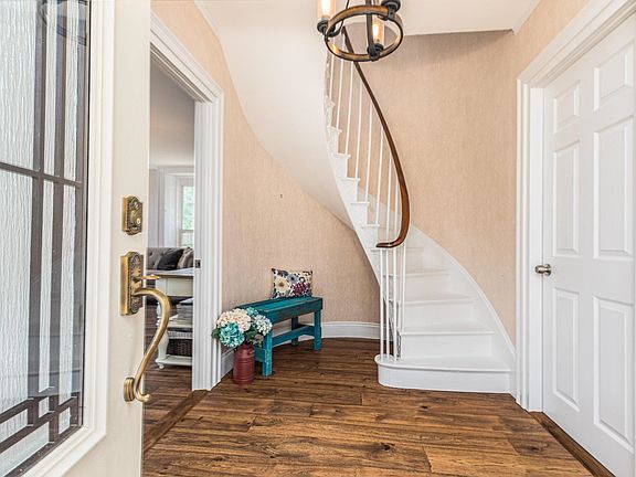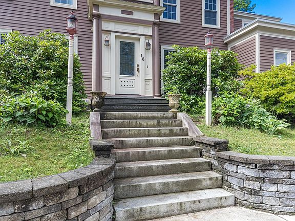 Beautifully updated, this large, light-filled Colonial was home to NH Gov. Noah Martin, in the mid-1800's. An exceptional property, it’s a true masterpiece, steeped in history and boasting remarkable charm. With a total of 10 rooms, 4 bedrooms and 2 1/2 baths, this home offers ample room for your family, for entertaining, and for working remotely. There are two staircases to the second floor and according to Dover history, the exquisite, spiral staircase in the center of the house is the only one left in Dover. The kitchen, completely remodeled, insulated and expanded in 2022 is equipped with state-of-the-art appliances including a "smarty" refrigerator, granite counters, a breakfast bar for 4 and adjoins a casual dining space which overlooks the private yard and deck. Reminiscent of the period, the formal dining room with fireplace, is adorned with traditional wainscoting in handsome, dark wood and includes a recessed china cupboard. A long list of modern updates includes new wiring and circuit breaker box, a new natural gas, Energy-Star Bradford White hot water boiler, a new 1/2 bath on the first floor, new front, back and side doors, & new flooring on the majority of the first floor rooms. The stunning exterior of the house has been repainted in 2023, and a new fence surrounds the yard and in-ground pool and pool shed w/new metal roof. Great in-town location close to the Children's Museum, the Public Library, new cafes, & the Downeaster train. Showings start immediately.