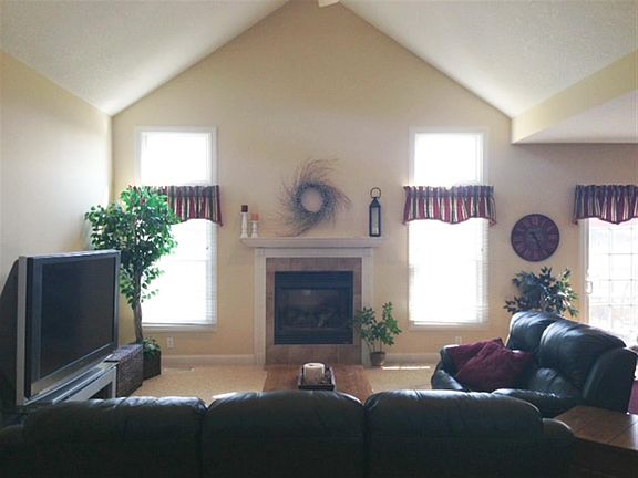 Over 3000 finished square feet! Beautiful 3 bdrm, possible 4th, 2 & 3/4 bath home on .53 acre lot in quiet cul-de-sac, backing up to a pool size backyard. Open floor plan with hdwd floors extending thru main floor including kitchen, dinette and foyer. Island kitchen opens to great room w/ fireplace and vaulted ceiling. Master bdrm with fireplace and sliding door to private deck. Finished walk-out basement with den. Stainless steel appliances and front-loading washer and dryer included. Irrigation system. Geo Thermal heating/cooling with warranty. 1 Year TMI Home Warranty.