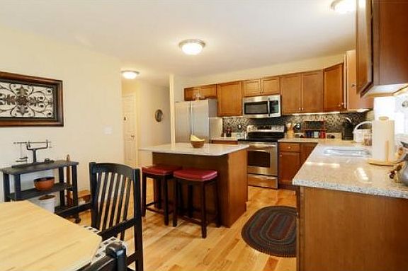 Located in sought after Pine Creek, minutes from Manchester shopping, restaurants, 293 and Rt.3. Gorgeous oversized granite kitchen with tile backsplash, gleaming hardwood floors and leading to deck overlooking woods. Large fireplaced living room. First floor laundry and master suite, 2nd bedroom and office with bath upstairs. Unfinished basement for lots of storage or play space.