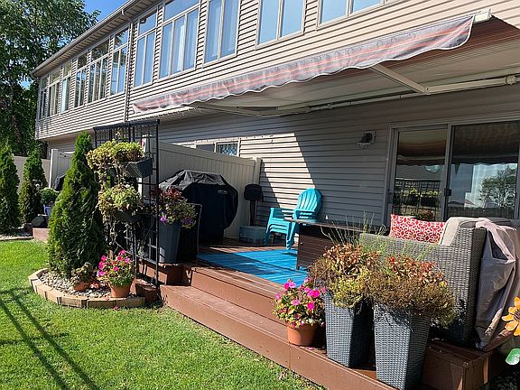 Enjoy lake life in this beautifully remodeled townhome with high end finishes and 2 boat slips on Pine Lake! Uniquely finished to include a bunk room for additional guests, currently being used as a nursery but can fit a queen bed or bunks. Beautiful custom cabinetry throughout, granite kitchen countertops and wet bar, custom glass shower and quartz counters in the master bath, custom built in closet, newer appliances and elevated ceilings all accentuate the incredible views of the lake. The upper level includes the living room with electric fireplace, custom kitchen, master bath and bedroom. The lower level includes a bunk room with barn door and closet, living/bedroom with built in desk and custom wet bar with wine fridge, full bathroom and laundry room with full-size washer and dryer. Additional storage in the finished garage space and the crawl space with cement bottom. Brand new in 2021 maintenance free composite deck and a water softener and tankless water heater were added in 2020. Maintenance free living at its best in this move in ready townhome!