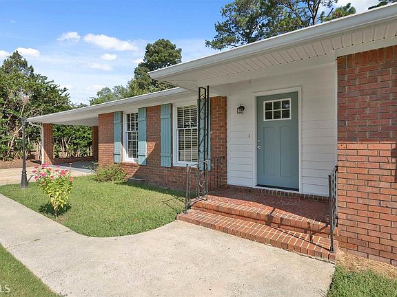 Adorable Four Sided Brick Ranch in Heart of Newnan is Ready for You to Move in & Make Your Home! Beautifully remodeled, this home features original hardwood floors, new lighting, new fixtures, new appliances, new tile in bathrooms, & an HVAC system that's only 2 years old. Master suite features his & her closets and en suite bathroom. Kitchen boasts granite countertops, tile backsplash, stainless steel appliances, & extra cabinet/counter space. Spacious laundry room w/storage cabinet is located near the two-car carport entrance making it a great mudroom as well. Open concept living area w/brick fireplace & sliding glass doors that lead to fenced-in back yard w/patio area perfect for entertaining family & friends. Outbuilding in back adds extra storage space.
