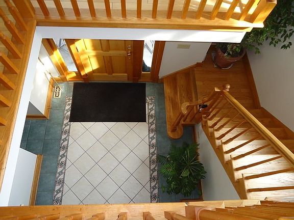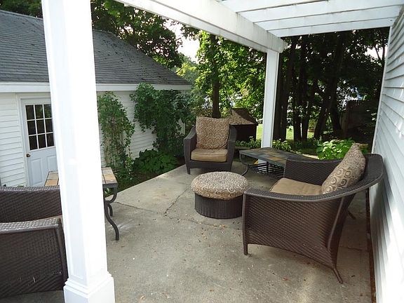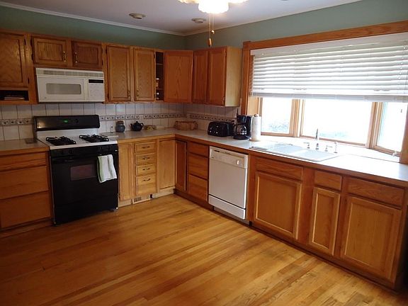 Spacious home on double (L-shaped) corner lot. Enter through the custom ash front door to the sunlit two-story foyer with ceramic tile floor. The huge kitchen includes all appliances. The first floor has an updated full bath and bedroom. There are two wood burning fireplaces, one in the living room, one in master bedroom. Another bedroom has a gas wood-style stove. Gas hot air furnace 2013, Central Air 2012. Great outdoor spaces-patio with portico and second floor front porch. Exc foyer chandelier.