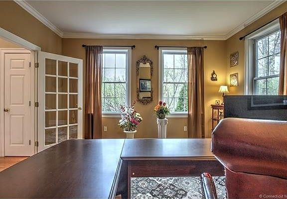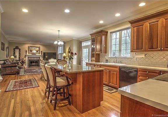 Exquisite colonial for sale in the desirable Westwoods Neighborhood of Hamden! HOME IS MOVE IN READY. Words and pictures can't fully describe the space and beauty of this home.... it's definitely a must see! Motivated seller. This beautiful home has a spacious open floor plan on the main level with hardwood floors throughout, and tons of natural light. The first floor features a large foyer, a den/office, a formal Dining Room, and a Great Room with fireplace that opens into the EIK. Lovely french doors lead out to your own private deck and charming yard/garden where you can relax and enjoy the quietness of the area! On the main level is also a laundry room, mudroom, and a full bath by the kitchen. Upstairs you'll find 4 bedrooms plus an oversized bonus room with large closet. The bonus room can easily be a 5th bedroom or an upstairs family room/rec room! The MBR has a walk-in-closet, and beautiful full bath with double sinks and linen closet. UPDATED BATHROOMS! There is a large attic with plenty of storage space or potential to be finished. In the lower level, the basement is partially finished with additional room for storage as well. The entire home has 3 zones for central air/heating which helps keep energy costs lower. Schedule a showing, make an offer, and get settled just in time for Summer! AGENTS: please read Agent Remarks!