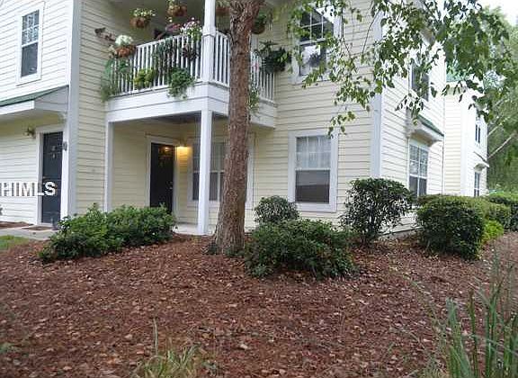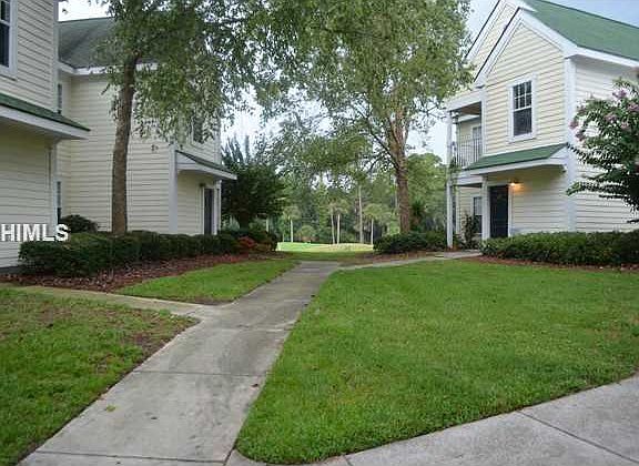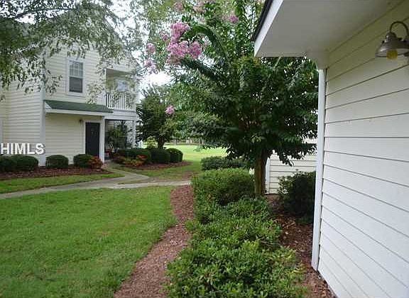 2-bedroom/2-bath ground floor flat in Villas at Old South. Conveniently located near the bridge allowing for easy access to both Hilton Head Island and Bluffton. Master bedroom with ensuite bath. Covered front porch with peak-a-boo view of the golf course and the community pool is just a short stroll away. (ZT)