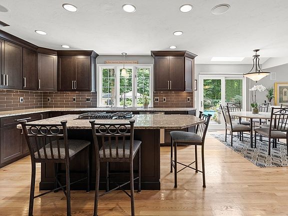 Welcome to this classically beautiful Colonial nestled on a ¾ acre lot in desirable Canterbury Estates featuring a flexible and open floorplan; thoughtfully designed layout for today’s lifestyles. Inviting two-story foyer beckons you as you enter. Remodeled designer kitchen, with high-end Espresso cabinets, granite counters, subway tile backsplash, serving station & island, provides the perfect setting for cooking and entertaining; open to sun splashed step-down family room with gas fireplace, cathedral ceiling, skylights & custom cabinetry. Home office accented with built-in bookcases, formal living room & dining room; hardwoods throughout 1st floor. Front and back staircases lead to 2nd level with cathedral ceiling primary bedroom suite & private bathroom with shower, Jacuzzi tub and separate water closet. 3 additional spacious bedrooms & full bath; plus storage. Relax in the private backyard; heated gunite pool, expansive deck & well designed landscaping. Finished Playroom & More!
