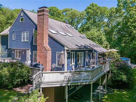 Welcome to 16 Old Stone Church Road, where luxury and privacy meet in this sun-drenched 4-bedroom home, boasting 3,880 square feet of living space. Step into the spacious open floor plan featuring a well-outfitted kitchen with breakfast nook, and cathedral ceiling living room, bathed in natural light. The first floor primary suite with ensuite bath offers convenience and privacy. A formal dining room, pantry, laundry room and half bath complete the first level. The second level features 3 bedrooms and 2 baths and a large and versatile media room. Entertain with ease in the oversized screened porch and wrap-around deck, which provide over 1,100 square feet of outdoor living space. The heated salt water pool, complete with a lounging deck, promises endless hours of enjoyment for both kids and adults. The walk-out basement with 7.4 ft ceilings is ideal for a home gym or kids rec space. Nestled in privacy and centrally located just outside of Adamsville, this property offers convenience with a 12-15 minute drive to three area beaches, 6 minutes to Tiverton 4 Corners, and only 9 minutes to Westport Central Village. Discover the perfect blend of spaciousness, tranquility and privacy at 16 Old Stone Church Road. Buyer pays Little Compton Agricultural Conservancy Trust tax at closing.