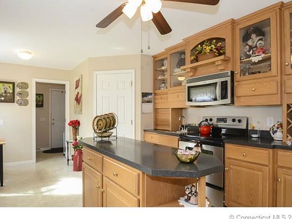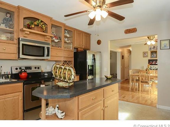 Brenda Milhomme Realty Group presents this like new home with 3 bedrooms and 2 baths. Home has hardwood floors throughout, gorgeous kitchen with walk in pantry, center island, oak cabinets, breakfast area, dining room slider to deck overlooking level yard with a garden area. Master bedroom with whirlpool tub, separate shower. Energy efficient 2x6 construction. Full basement, attached 2 car garage, 2 storage sheds. Very clean and well maintained. Level lot on .86 acres. Please contact Brenda Milhomme for more information or a private showing. 860.576.8485.