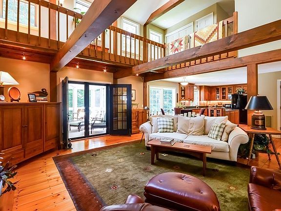 - Liv Dscrp: Fireplace, Main Level, Open Floor Plan, Slider, Flooring - Wood, Skylight, Ceiling - Beamed, Balcony - Interior