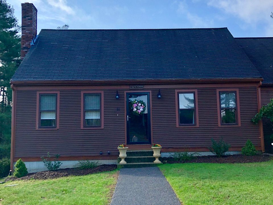 CHECK OUT THIS STUNNING cape-style townhouse condo. Versatile layout shows as a 3 bedroom (however septic is rated for 2 bedroom), 2 bedrooms on the second floor, 1 bedroom on the 1st floor or can be used as a den. 1.5 baths. Step down living room with beautiful bamboo flooring. Large open kitchen with bamboo flooring, grantie counter tops, lots of natural light. Mini-split air conditioning. Full basement. Large deck looking over serene back yard, perfect for an evening meal or summer gathering. Not all units have a garage - THIS ONE DOES. A fantastic spacious development - 34 units set up as 17 duplexes on approx. 17 gorgeous acres. Association has pathway down to the North River. SUPER CONVENIENT North Pembroke location - Highway access is 1 mile, if you want an ice cream - Friendly's is less than 1 mile. Same distance for North River Plaza, Stop & Shop, clothes shopping, restaurants. Check out the video