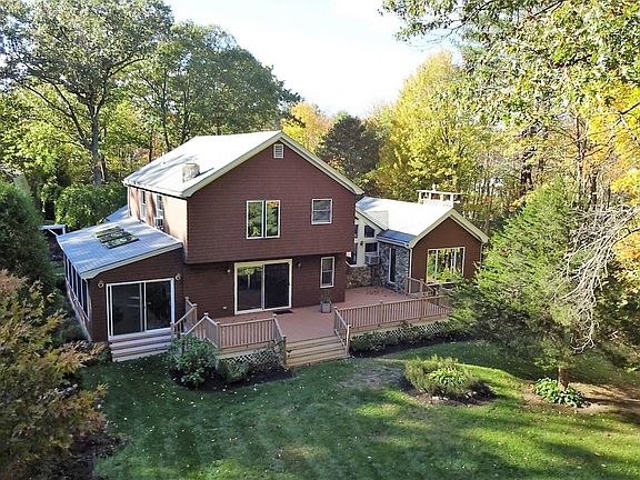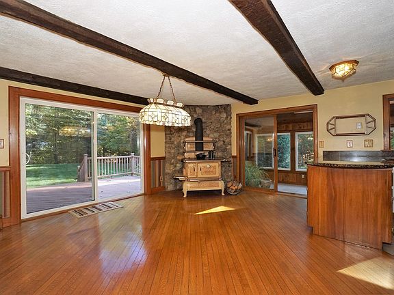 Custom built and lovingly designed Post and Beam home tucked in off the road on a serene lot with gorgeous gardens and stone walls. The holidays never felt so good as when celebrated in this sunk in great room with stunning stone fireplace, soaring wood ceilings and large windows. Unique is an understatement when describing this amazing kitchen. Open to the large dining area featuring a old style wood cook stove, brick alcove holding the Jenn air cook top and wall oven. Loads of counter space and bright with natural light streaming in from the 4 seasons room. Enjoy mornig coffee in this warm and inviting space. Love outdoor spaces? Grill and entertain on this expansive Deck overlooking this private lush beautifully landscaped yard. But wait there's more! Have a business you want to do from home? Need space for an in-law? Or just love to have a garage with extra large workshop? Check out this 39 x 24 - 2 story barn/1 car detached garage! The possibilities are endless! There so much more to this home that you must just see it!