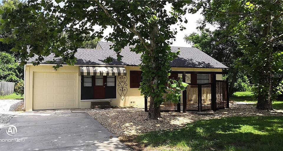 Cute as a button with decorative awnings. Roof 2019, newer a/c. Beautiful wood floors. Two bedrooms, 1 bath with a one car garage.