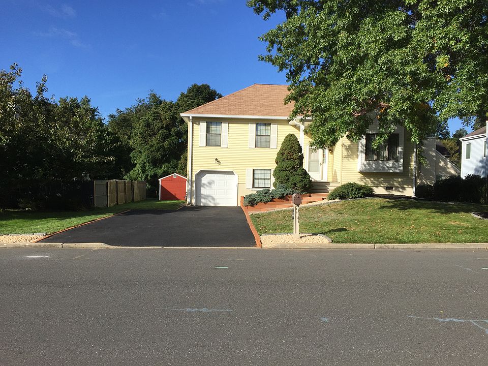 Bright and airy atop a hill~~~>4 bedroom, 2 FULL bath split level home located just minutes to downtown Red Bank and GSP for commuters. Very well maintained property with lush green lawn complete with new sprinkler system (2015) and paver walkways leading to this open concept home. Large vaulted ceiling living room overlooking stainless appliance kitchen with new exhaust hood and dining room above. Spacious bedrooms and clean well maintained bathrooms. Cozy 1st floor family room complete with fireplace, laminate flooring and sliding glass door to outside large deck. Private back yard surrounded by wall of arborvitae trees and large storage shed. Light walls make this home very easy to add color and make it your own. Newer HVAC sysem (2008,2010), Water Heater (2015)Excellent location