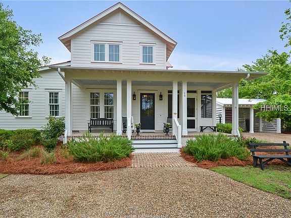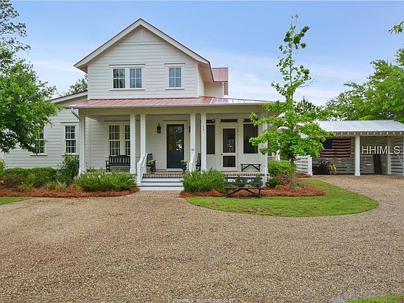 Enjoy relaxing views of the Longfield Farms equestrian center and pastures at 16 Parader Circle. Designed by Pearce Scott Architects and built by CS Thomas, this modern farmstead-inspired property consists of a 3 bed/3.5 bath main house with front and back screened porches, a 3-car garage/carriage house barn plus carport. The open concept floor plan features a first floor master plus office. Reclaimed pine floors and other authentic materials add to a timeless, unique feel. Conveniently located in the Wilson Hayfields, this unique Lowcountry retreat pairs a private setting with easy access to all Palmetto Bluff amenities.