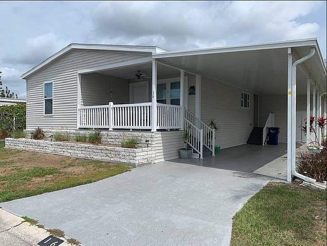 Just Listed $169,900 Furnished. Are you looking for a move-in ready home that's immediately available? Then you need to see this 2020 Palm Harbor home! Step inside to a magnificent open concept living room, dining area and kitchen. This home has an open floor plan that offers natural lighting. The kitchen is fully equipped with all your major appliances. Tons of counter and cabinet space. The center island is a wonderful added bonus for quick meals and snacks. Tastefully decorated and fully furnished all you need is your suitcase. The home is built with all sheetrock, instead of paneling, crown molding, custom blinds throughout and ceiling fans to keep the cool breeze flowing. The home has vinyl plank flooring throughout the entire home. Double panel doors give this home a nice decorative touch. Indoor laundry with a washer and dryer is a feature everyone loves. The guest bedroom is spacious and perfect for your guests to spread out. The main bathroom features a tub/shower combo. The primary bedroom is large with plenty of room for a seating area for reading or relaxing. The primary ensuite bathroom features a step-in shower with a sliding glass door and double sinks with storage underneath. The exterior has a lovely entrance with a covered front porch that could be screened in. The exterior also features a side driveway, carport and storage shed. The siding in vinyl and the roof is shingle. Call today for a showing. Plantation Village is a large, gated community highly sought after in the Bradenton area due to the lot rent including the following services, cable TV, high speed internet, lawn care and sewer. The park has a new pickleball court, bocci ball, horseshoe pits, shuffleboard, swimming pool, recycling and trash removal. There is a lot of activity going on in this community with live entertainment and parties for every occasion. Plantation Village is a Gated 55+ Community. The lot rent is $930 per month. Home sales do not last long in this community. All listing information given to us is considered appropriate and reliable but always recommend a home inspection by independent companies who specialize in manufactured mobile homes. We cannot guarantee the accuracy of the information given to us or the condition of the home. Lot rents are determined by the community office not our company.