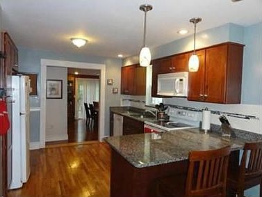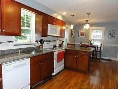 This home is priced to sell! Move right into this renovated Cape near Burlington's newest elementary school! This home features 3 bedrooms, 2 full bathrooms, Modern Eat In Kitchen with new cabinets & granite counter tops, large 1st floor master bedroom with cathedral ceilings & skylights, walk in closet and access to bathroom. The large dining room can easily be used as family room and walks out to deck/backyard. Replacement windows through out. Easy access to highway. Open House 6/26 from 12-2