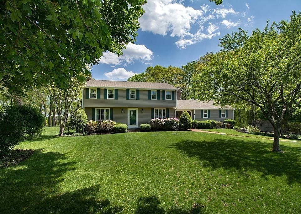 HAVEN OF TRANQUILLITY! This well maintained Colonial offers 10 rooms, 5 bedrooms, 3 bathrooms, master suite with his-and-her closets. The first floor boasts a well-designed kitchen opening to a light soaked sun room. Spacious living room with fireplace, formal dining room & office/den. First floor bedroom with a full bathroom is perfect for in-laws, au-pair or private living. The finished lower level has a in home gym, with its own kitchen perfect for entertaining. This gracious home is enhanced by a large composite deck, which looks out admiringly over the 2.7 acres of amazing landscape, truly a serene and peaceful atmosphere.