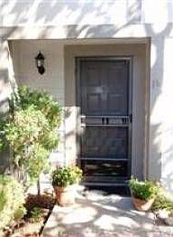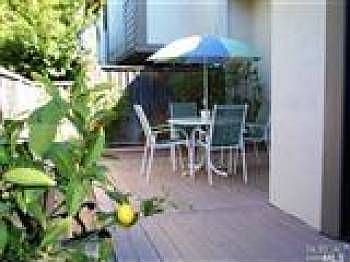 Bright end-unit. One level with 2 patio areas. Very spacious 2 bedroom rooms, vaulted ceilings in living room with fireplace. Laundry area in the unit. 2 car carport with storage. Common area grounds, swimming pool, and club house.