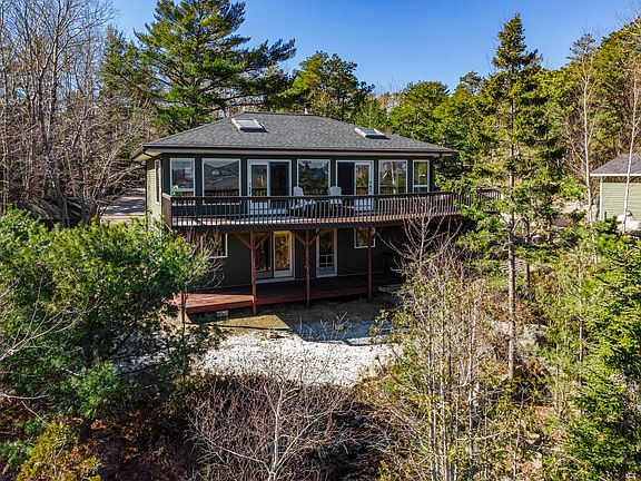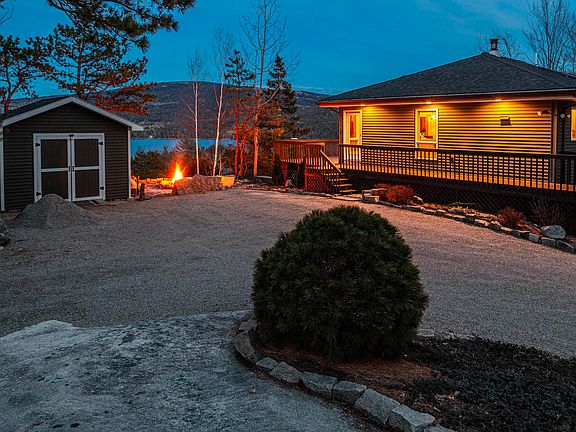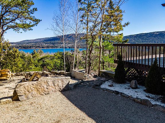 Looking for stunning views, a majestic setting, & an efficient turnkey home? This is the one! The granite outcroppings, pine trees, and neatly set coping stones welcome you to this four bedroom, 3.5 bath contemporary raised ranch home with exposed beams, cathedral ceilings, large windows and french doors. The true focal point - breathtaking views over Somes Sound and across to Sargeant Drive, Parkman and Sargent Mountains. First level offers large great room with living room, dining area, kitchen and glass doors that open to the oversized deck. First level also offers half bath, primary suite with updated bathroom, double sinks, tile, glassed in shower. The ground level offers a second primary suite with full bath, oversized soaking tub, and doors to the lower deck. Two additional bedrooms and bath also on ground level. Navien propane boiler and brand new Jotul woodstove ensure efficient warmth. Light and bright, while private and still - this home is a peaceful haven. The 2.66 acres of land provide privacy and ensure the views will never be spoiled. Garden shed, wood shed, and an additional building area with additional four bedroom septic/leachfield already installed for potential expansion or garage/guesthouse. Hall Quarry, village within Mount Desert, is a great central MDI location. Lovingly maintained and cared for, this home is being sold furnished and turnkey.