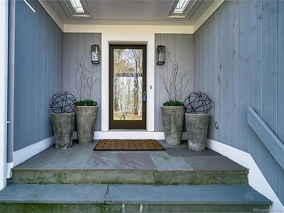 Thoughtfully designed by award-winning architect Arlene Tunney, this custom-built passive solar ranch with bonus studio/office artfully combines form & function for a truly exceptional home & lifestyle! Open-concept design highlights impressive walls of Anderson windows & French doors, soaring vaulted ceilings, stately wood beams, double sided fireplace with display niches, Vermont Structural Slate Co. flooring, spiral staircase, custom millwork & dramatic architectural angles! A multitude of windows & new Velux skylights fill this home with outstanding natural light! Master bedroom with ensuite, hardwood flooring & walk-in closet! Private studio/loft with built-in cabinetry & hardwood flooring! Lower lever family/rec room! Cul-de sac. 4 acres. Private access to Chatfield Hollow State Park! New 50 year Timberline HD roof! New gutters & leaf guards! Central air. Bluestone patio. Deck. 2 car garage. Other Features: 9 foot ceilings on first and second floors, built-ins, skylights, spiral stairs, wet bar, decorative molding throughout, french doors, beamed ceilings throughout outdoor lighting, Timberline roof, thermal windows, direct entry storage above garage and heated dark room in the basement.