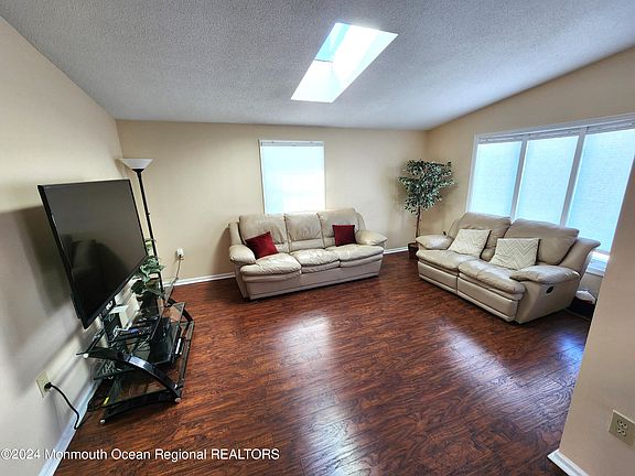 As you step inside, you'll be greeted by a spacious and inviting interior. This home has vaulted ceilings, which creates an open and airy atmosphere in the living space. The eat in kitchen has upgraded stainless appliances, cabinets galore, newer granite counters, tiled backsplash.  Both baths have been beautifully remodeled. Your Master has a slider to a small deck and into the backyard too. High Efficiency HVAC( 5 yrs), hot water heater, and wireless system w/addl thermostats provide peace of mind knowing that important updates have already been taken care of. Don't miss the opportunity to make this Manalapan home your own.