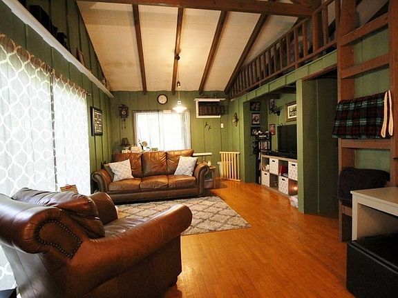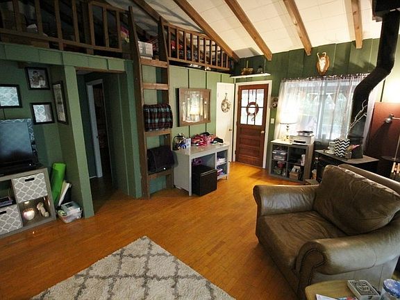 Welcome to the tree house! This 2 bedroom 2 bath Unique mountain home would make a great vacation spot or starter home! 3 levels of living include first level featuring eat-in kitchen, Second Level has living room with sleeping loft, bedroom, bath and laundry. Third level offers a large master with en-suite bathroom. Hardwood and tile floors! Sit nestled amongst the trees on the porch/deck and enjoy the mountain air. Or enjoy some family and friend time around the fire pit area. Paved driveway and not far from town! Come enjoy the mountain lifestyle and all it has to offer!