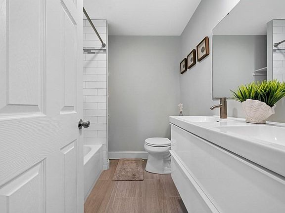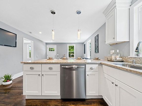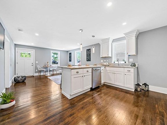 The gorgeous hardwood floors throughout the main level. The beautifully renovated kitchen features new cabinets, granite counter tops, new stainless steel appliances, and a breakfast bar. This bright, sunny home offers two generously sized bedrooms and an updated bathroom boasting a classic subway tiled shower/tub with glass tile accents, new tile floor and new double vanity. No need to haul the laundry to the basement - this home features laundry just off the kitchen! There is a good amount of storage space in the basement.