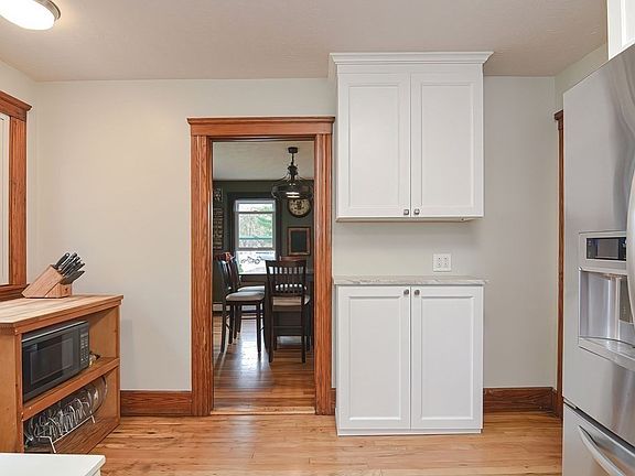 Tired of renting? Need to downsize? Come on over and see this cozy, charming antique. Eclectic blend of original features: built-ins, hardwood floors and wood trim around windows and doorways. And then there's the up-to-date kitchen featuring newer, stainless steel appliances, lots of of cabinet space and thoughtfully added extra storage - making the most of the space available. Moving upstairs, the nicely sized, main bedroom has plenty of closet space available, and the bathroom is light-filled and modern. Working remotely? Take a break on your deck that overlooks your tranquil, level backyard. The well-lit basement has a great workspace if you like to tinker, and has even more added shelving/storage. Convenient commuter location, <5 miles to train, close to Routes 122 and 140, all located in lovely, rural Grafton. Come make your mark on this charming home.