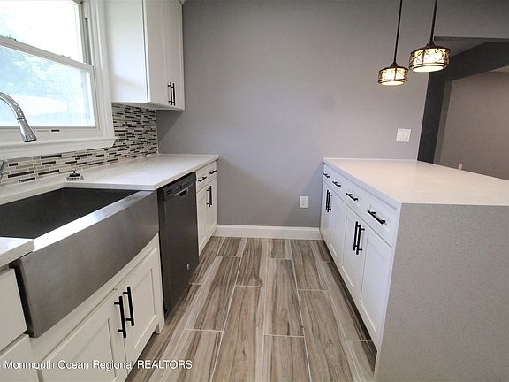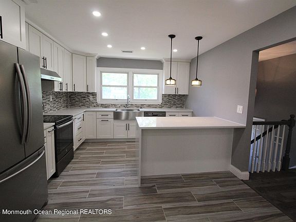 Newly renovated home of 2140 sq ft, on a quiet street with no thru traffic: granite countertop with waterfall edge; new white kitchen cabinets, all new appliances; all new LED lights and switches which can be remote controlled; widened entry way from kitchen to dining room to living room to present an open feel; built-in cabinets in dining room for extra storage with recessed lights above; all new engineered flooring throughout (over the original hardwood floor on the second floor). The original oil heating system is replaced by a commercial grade, high efficiency Mitsubishi system which is used for heating and cooling. This is located at a desirable location, easy access to major shopping/restaurants, major highways, and commuter bus right on Rt 79. Bi-level style home provides a great layout for multi-generation living. The half bath on the ground floor can be easily expanded to add a shower.