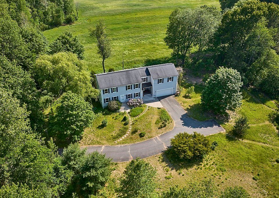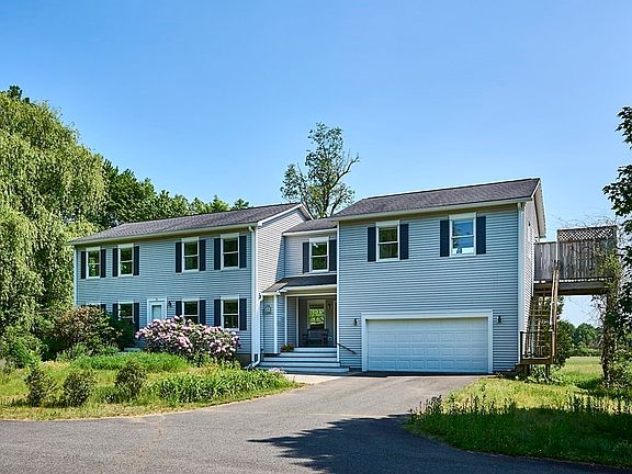 Discover a hidden treasure! This remodeled 2002 Colonial is tucked away at the end of a cul-de-sac in its natural, magical refuge w/ amazing, ever-changing views south over APR farmland & to the Holyoke Range. But just imagine! You are within walking distance of Fort River Elem & Amherst Center! Enjoy a spacious, convenient floor plan: 2736 SF, main level has kitchen, LR, & dining area + slider to deck overlooking field,1 bedrm/office + a library & laundry/half bath. The 2nd level offers 2 ensuite bedrms + 2 more bedrms & full bath. The large, main bedrm over the 2-car garage has an exterior deck & picture windows w/ views to take your breath away - as do most rooms in the house & your soaking tub. Upgrades abound: updated kitchen; hardwood floors; covered entry porch; owned solar (PV & hot water); 4 mini-split heat pumps; gas fireplace; added insulation in walk-out basemt & attic; 240-amp charging line to garage. Don't miss out! This unique property has never before been on the market