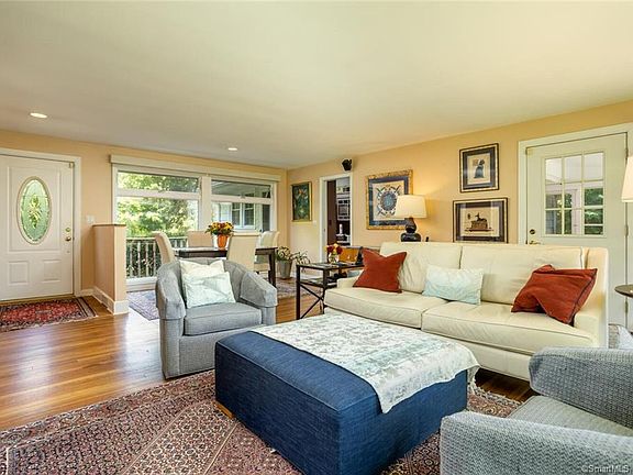 Looking for a 4 bedroom Ranch in convenient Westover location? Come see this lovely home featuring an open concept living room with fireplace and dining room with floor-to-ceiling, and wall-to-wall windows, front and back, overlooking lovely professionally landscaped half acre. Doors from both the living room and eat-in kitchen lead to enclosed porch and large deck for great entertaining or relaxing overlooking private gardens of flowers and nature. Spacious kitchen has breakfast bar, cabinets galore and closet with washer and dryer. Family room directly off the kitchen can also double as at-home office. Master bedroom suite has wall-to-wall picture window, extra large walk-in custom closet, and bathroom featuring double vanity, jetted tub, and steam shower. Three additional bedrooms and 1 and a half bathrooms complete the first floor. The walk-out lower level is ideal for in-law, or au-pair situation featuring spacious great room with kitchen area and for dining and relaxing, plus separate bedroom with full bathroom. Hardwood floors in majority of main level, central air in both levels, city water, gas heat, 2 car garage. Outstanding location minutes to downtown, trains, I-95 or Merritt Parkway, public golf course, medical facilities, Ridgeway Shopping Center, neighborhood schools and Stamford beaches.