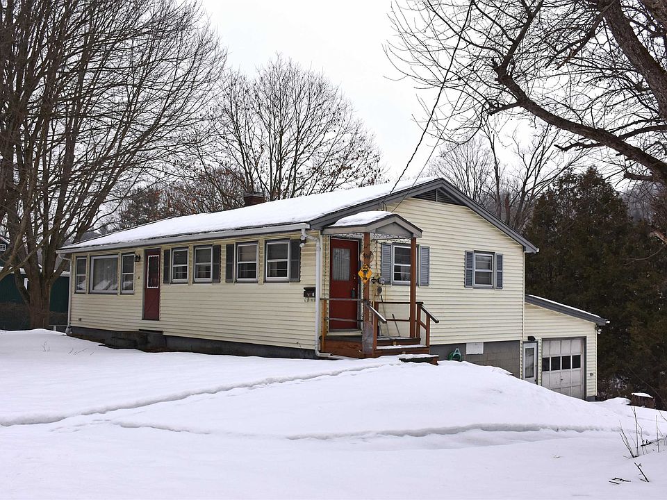 Available for immediate occupancy, this 3-BR, 1-bath ranch is on a low-traffic side street near Schools, Barre Health & Rehab Center, Municipal pool and playground. Kitchen equipped with appliances and plenty of counter space has adjacent dining area. Large corner living room. Two good-sized bedrooms at either end of the hallway along the back side of the main level, with a smaller bedroom and full bath, in-between. Downstairs, there's plenty of unfinished space for a workshop, plus a carpeted family room with cedar-lined closet. Direct entry oversized 1-car garage, too. Backyard goes down to the Stevens Brook, where a strip of this parcel along the shoreline appears to be in floodplain, but not the dwelling structure which is at a much higher elevation, looking at FEMA maps. Old storage shed, too. With many of the original finishes, this house could be easily transformed with a little paint and new floor coverings to suit your taste, but certainly very livable as it exists. Representative for Seller has completed the disclosure to the best of his knowledge, but he hasn't lived at the property, which will be transferred in "as is" condition. Back yard appears a bit uneven under the snow, so please take precautions if you are walking around out there during showings.