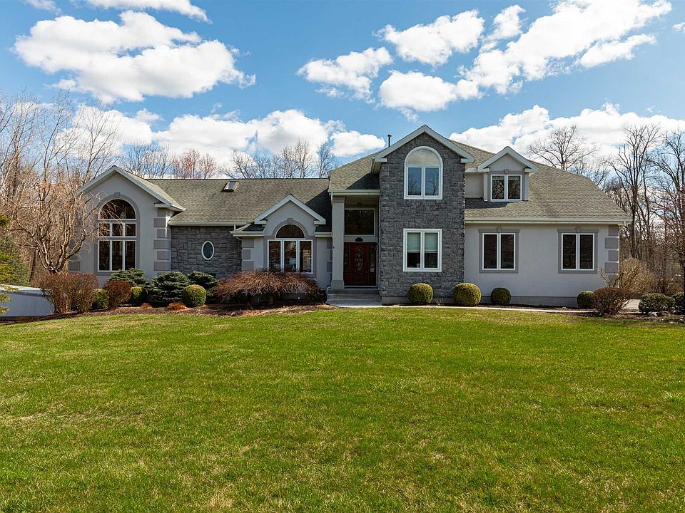 Beautiful contemporary colonial situated on a cul-de-sac in an excellent commuter location. Set on a 2.5 acre flat lot with an in-ground pool and access to a 1 acre bass-filled pond. First floor offers a dramatic foyer, office, powder room, kitchen with gas cooking, family room with a fireplace, living room, formal dining room, and a great room with kitchenette, full bath, and loft. Perfect for in-laws, guests, or au-pair suite. Second floor features a master bedroom suite with a balcony and three spacious bedrooms with a separate full bath. Freshly painted and new light fixtures throughout. Finished walk-out basement with gym equipment leads to the attractive backyard with two decks, spacious patio, pergola, and L-shaped pool. Other highlights include TWO 2-car garages with car lift, a full house generator, and new gas furnace. Close to shopping, schools, and highways. An excellent home to entertain or to raise a family.