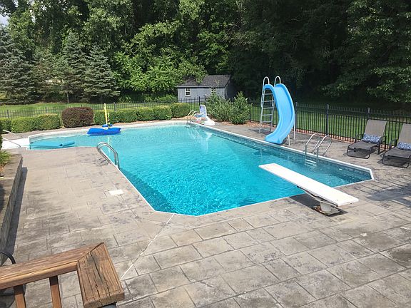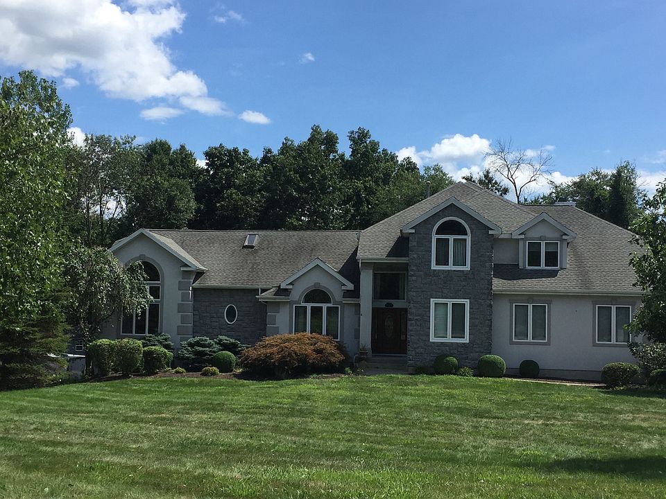 Beautiful contemporary colonial situated on a cul-de-sac in an excellent commuter location. Set on a 2.5 acre flat lot with an in-ground pool and access to a 1 acre bass-filled pond. First floor offers a dramatic foyer, office, powder room, kitchen with gas cooking, family room with a fireplace, living room, formal dining room, and a great room with kitchenette, full bath, and loft. Perfect for in-laws, guests, or au-pair suite. Second floor features a master bedroom suite with a balcony and three spacious bedrooms with a separate full bath. Freshly painted and new light fixtures throughout. Finished walk-out basement with gym equipment leads to the attractive backyard with two decks, spacious patio, pergola, and L-shaped pool. Other highlights include TWO 2-car garages with car lift, a full house generator, and new gas furnace. Close to shopping, schools, and highways. An excellent home to entertain or to raise a family.