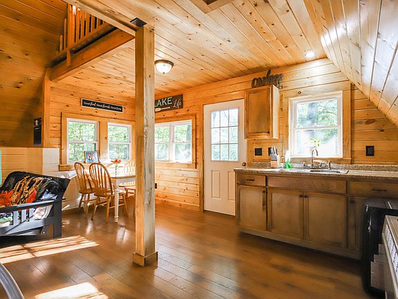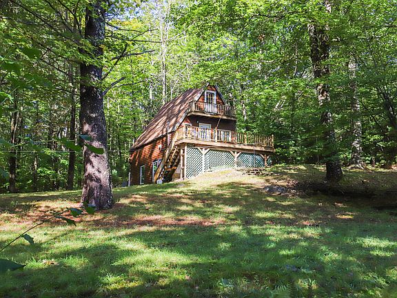 Personal Use, Airbnb, or Year Round Get-Away are just some of the uses for this Charming A Frame Cottage nestled in the woods on a Large Lot, with a right-of-way/Members only Beach on beautiful Long Pond. Come Enjoy this Private setting! Newly updated interior and appliances. Open Concept Kitchen/Living room combination with a spiral staircase to an upstairs loft. Nice decks to relax on with Partial Views of the lake. The basement is framed, and could be finished for more space. Wonderful community sandy beach for swimming or picnics only a walk away. Moor your boat on one of the highest water quality lakes in the state! Only 1.2 Miles away from the Travis Mills Foundation Veterans Retreat!